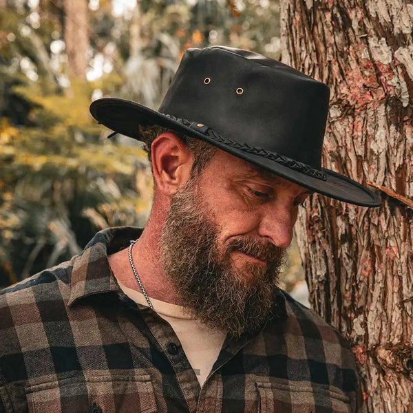Black Leather Low Profile Western Style Crushable Hat